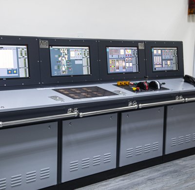 محاكيات الفولتية العالية المتكاملة والمترابطة مع محاكي غرفة المحركات لاعطاء واقعية حقيقة كالتي يتم تنفيذها على السفن وتم اعتماده من الهيئة البحرية الأردنية وMNTB و DNV.